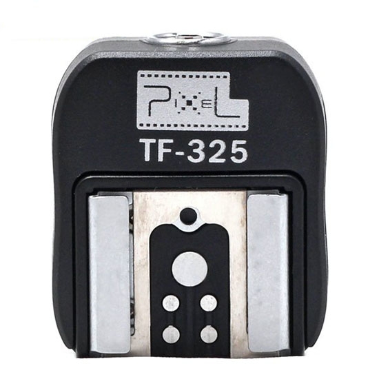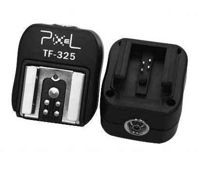 Адаптер на горячий башмак Pixel TF-325 предназначен для установки вспышек со стандартным горячим башмаком на камеры Sony Alpha и Minilta Dynax c нестандартным горячим башмаком. Переходник имеет разъем для подключения кабеля с PC-разъемом. Использование TF-325 с высоковольтными вспышками не предусмотрено. Нет поддержки режима TTL и других автоматических функций.