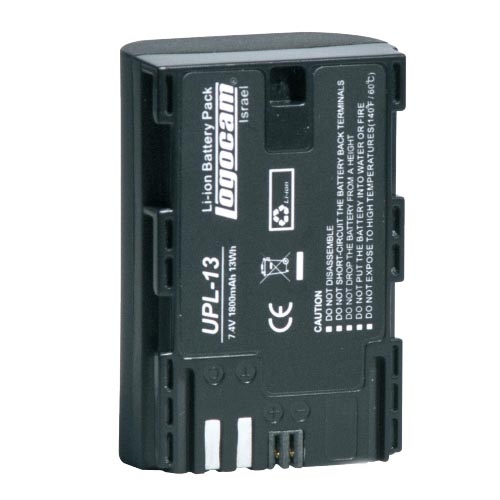 Logocam UPL-13 — литий-ионная аккумуляторная батарея, предназначенная для использования с цифровыми видеокамерами Canon EOS 5D Mark II и EOS 7D, EOS 60D. Может использоваться вместо аккумуляторных батарей Canon LP-E6. Емкость 13 Втч. Батарея имеет сертификат соответствия российским стандартам. |