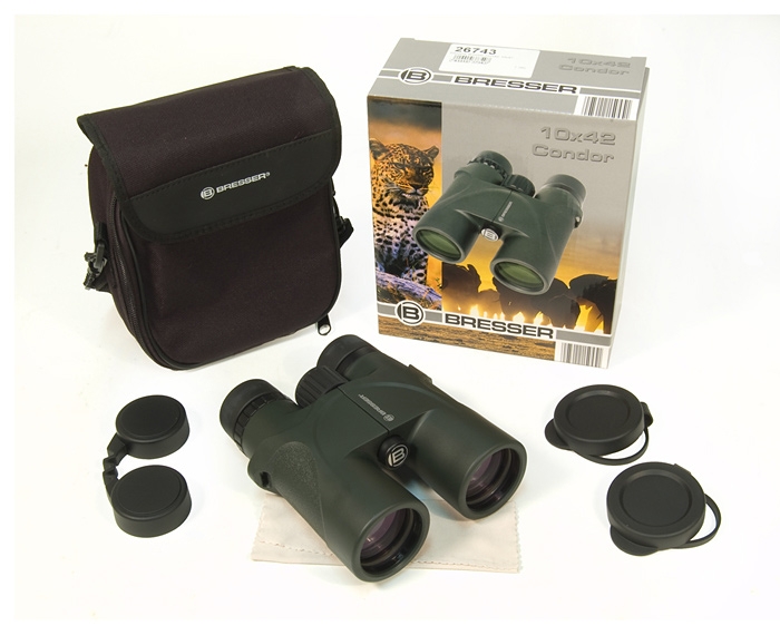 Компактный десятикратный бинокль Bresser Condor 10x42 с высококачественной оптикой в легком водонепроницаемом корпусе – это то, что нужно туристу и путешественнику. Этот бинокль универсален, ему найдется применение в городе и в походе, на стадионе и даже в музее – ближний предел фокусировки составляет всего 3 метра, благодаря чему можно рассматривать экспонаты, к которым нет возможности подойти близко. Туристы и охотники, без сомнения, оценят водонепроницаемый корпус и крышки окуляров, которые никогда не потеряются.