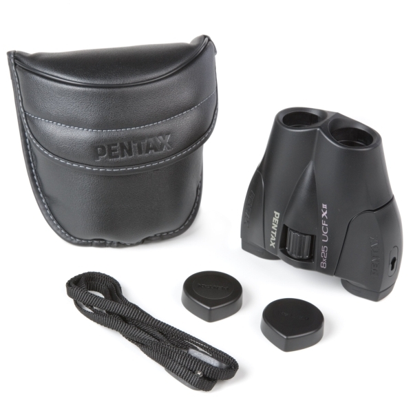 Компактный и легковесный бинокль Pentax 8x25 UCF X II можно положить в карман рюкзака или сумки и взять с собой не только в длительное путешествие, но даже на велосипедную или непродолжительную пешую прогулку. Цельнолитой корпус из ударопрочного пластика имеет нескользящее резиновое покрытие, которое надёжно защищает прибор от царапин и пыли, обеспечивая при этом удобный хват. Выдвижные наглазники уменьшают боковую засветку и позволяют установить оптимальное расстояние от глаз наблюдателя до окуляров бинокля. Для длительных стационарных наблюдений предусмотрена установка прибора на штатив (диаметр штативного гнезда ¼ дюйма).