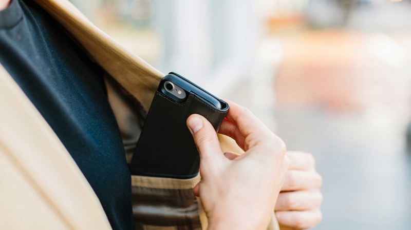 • Имеет несколько отсеков для банковских карт и купюр