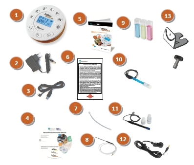 • Датчик температуры исследуемой среды от -25 до 110 °С