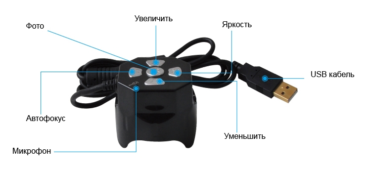 Новый цифровой USB-микроскоп DigiMicro Mini c 5,0 Mpix камерой. Сочетает в себе возможность получать отличные изображения разрешением 2592х1944 и видео высокой четкости 720р с суперкомпактными размерами и простотой в использовании. Функция автофокуса обеспечивает постоянно четкое изображение даже в процессе перемещения DigiMicro Mini относительно исследуемого объекта. Кроме того, доступна функция тонкой ручной фокусировки. Штатив с тремя точками опоры позволяет быстро и удобно выбрать оптимальный угол положения микроскопа для получения четкого изображения. Кнопки управления функциями микроскопа, с интуитивно понятными значками, удобно расположены на верхней крышке корпуса DigiMicro Mini, позволяют увеличивать или уменьшать изображение, регулировать яркость подсветки, управлять функцией автофокуса, производить моментальные фотоснимки объекта. Объектив с 5 Mpix камерой формирует четкое и ясное изображение самых мелких деталей. Светодиодная подсветка с белым рассеивателем обеспечивает оптимальное равномерное освещение объекта. Связь с компьютером для передачи данных осуществляется посредством USB-кабеля, через него же происходит электропитание микроскопа. Изображения объекта исследования сохраняются в памяти компьютера в виде фотоснимков, либо видеофайлов, могут обрабатываться с помощью специального программного обеспечения, подвергаться редактированию, архивироваться, пересылаться с помощью электронной почты и т.д.