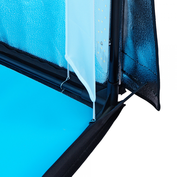 • LED панели в сочетании с серебристыми отражающими внутренними поверхностями фотобокса дают бестеневое освещение для предметной фотографии.