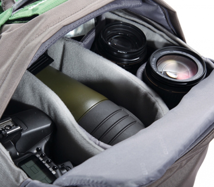Серию Kinray безусловно оценят фотографы-натуралисты и путешественники. Конструкция рюкзака позволяет максимально адаптировать его для различных задач. В просторном внутреннем отделение можно надёжно разместить: зеркальную камеру, зрительную трубу или зеркальную камеру с присоединённым телеобъективом. Прочный и влагостойкий материал рюкзака надёжно защищает оборудование в плохую погоду. Убираемый чехол от дождя обеспечивает дополнительную защиту. Большой клапан на лицевой стороне позволяет быстро и безопасно достать необходимое оборудование. Мягкая плечевая лямка изменяемой длины и система регулируемых ремней обеспечивают идеальную подгонку по фигуре. Также предусмотрены: крепление для штатива и регулирующие высоту рюкзака ремни. В карманах на «молнии» удобно хранить необходимые мелкие предметы, ключи, путеводители и т. п. Ремень с карабином, на лицевой стороне, служит для переноски небольших аксессуаров. Два нижних ремня позволяют закрепить на рюкзаке крупные предметы, такие как спальные мешки или туристические коврики.