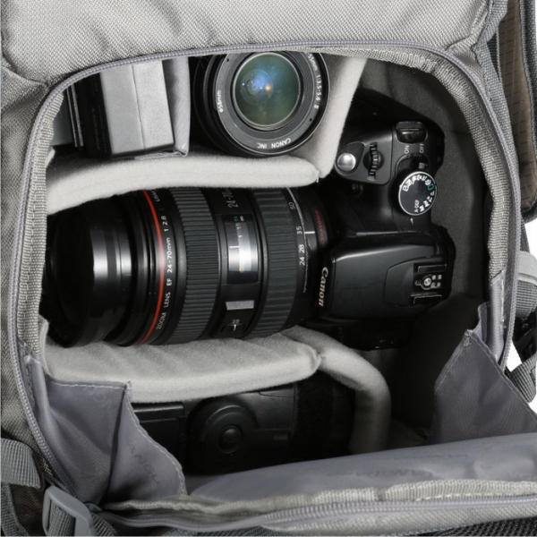 • Вместимость: зеркальная камера с объективом + 1-2 объектива, вспышка и аксессуары + планшет + монопод или планшет