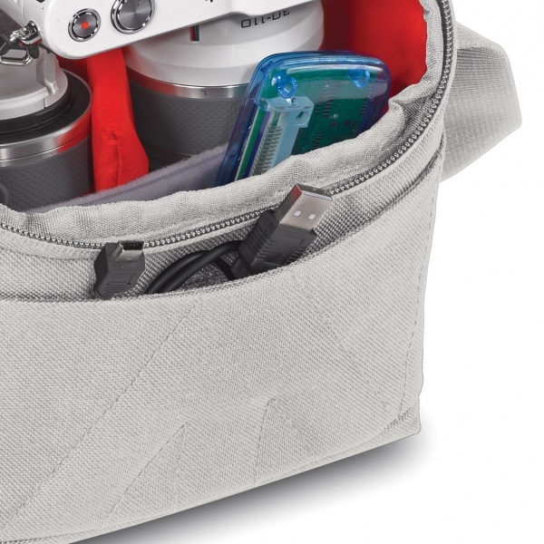 Небольшая плечевая сумка может разместить беззеркальные камеры со съемным объективом или компактные DSLR камеры, дополнительный объектив. Есть небольшие карманы для личных вещей и небольших аксессуаров.