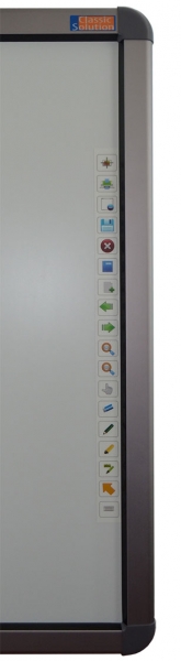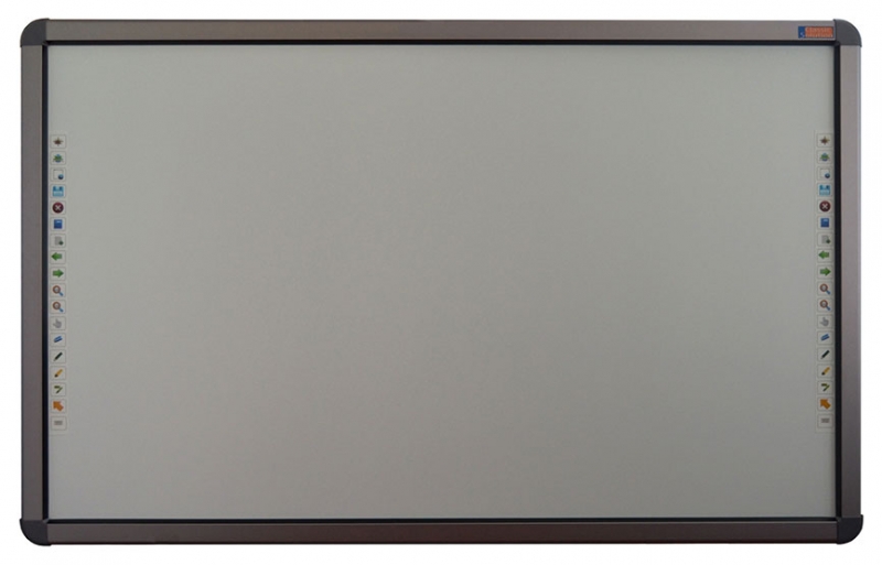 Широкоформатная интерактивная доска Classiс Solution CS-IR-89ten поддерживает одновременную работу 6 пользователей, которые могут писать, рисовать, передвигать объекты пальцем, стилусом или указкой. В единицу времени доска поддерживает 10 касаний. Хотите, чтобы было как в айфоне - модель CS-IR-89ten поддерживает мультитач-функцию. Новинка поддерживает только операционные системы Windows: XP, Vista, 7, 8. Технология распознавания касаний, используемая в интерактивной доске Classic Solution 89ten, основана на оптической светодиодной технологии, когда приемники инфракрасного излучения считывают положение пальца, стилуса или указки на рабочей поверхности доски. Пары светодиодов и фототранзисторов покрывают рабочее пространство сеткой. При нажатии на поверхность луч инфракрасного излечения между светодиодами и фототранзисторами прерывается в точке нажатия. Такая позиция переводится в координаты "X" и "Y", которые компьютер впоследствии преобразует в положение мыши. Сама поверхность интерактивной доски Classic Solution CS-IR-89ten антибликовая и допускает использование магнитов и маркеров сухого стирания для белой доски. По бокам на интерактивной доске расположены ярлыки для быстрого доступа к наиболее часто используемым функциям.