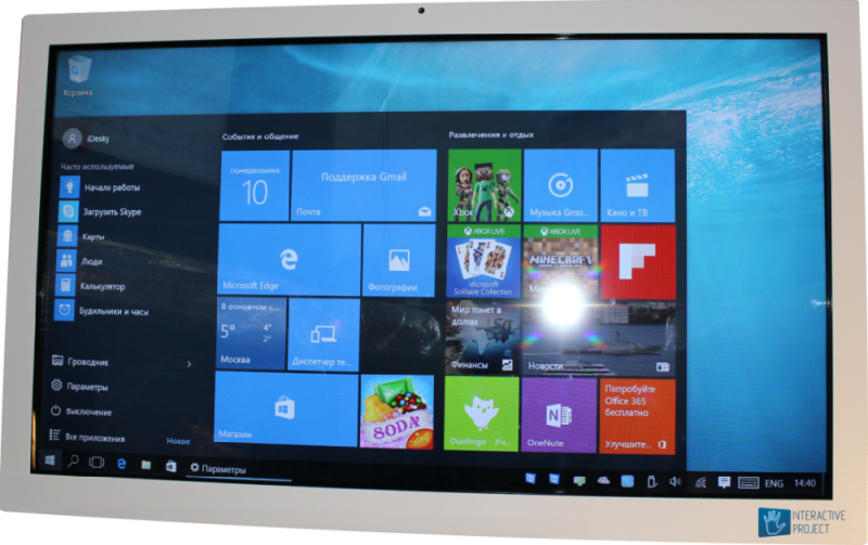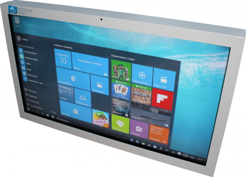 Интерактивный сенсорный дисплей Project touch 55. Full HD разрешение (1920х1080), диагональ 55" (140 см), поддержка 10 касаний одновременно. Встроенный компьютер с процессором Core i3, оперативной памятью 4 Gb и жестким диском SSD 120 Gb. ОС Win 10. Встроенная в корпус Web камера с HD разрешением. Предустановлено развивающее программное обеспечение (288 программ). Сделано в России!