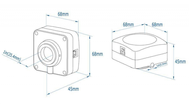 - Корпус цифровой камеры ToupCam U3CMOS08500KPA изготовлен из анодированного алюминия. Для защиты сенсора используется IR-CUT фильтр высокого качества (отсекает все инфракрасное излучение от 700 -750 нм).