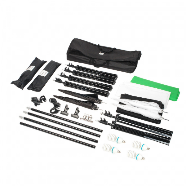 Люминесцентные (флуоресцентные) лампы – энергосберегающий источник постоянного студийного света. В комплект входят лампы (150 Вт, Е27) с цветовой температурой 5500 К, эквивалентной прямому полуденному солнечному свету. Ресурс лампы – 8000 часов работы.