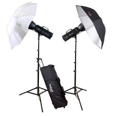 Два осветителя Master Pro 1000, суммарной мощностью до 2000 Дж, отлично подойдут для рекламной и портретной съемки. Микропроцессор в осветителях этой серии дает возможность делать снимки со стабильной цветовой температурой и измеряемой мощностью источника освещения с шагом регулировки 0,1 ступени. Осветители серииMaster Pro имеют удобную цифровую панель управления. В качестве бесплатного дополнения к осветителям серии Master Pro прилагается ресивер, который легко устанавливается в специальный слот на задней панели. Работая на частоте 2,4 ГГц, радио ресивер обеспечивает высокую скорость синхронизации. Кроме осветителей, комплект включает два универсальных рефлектора, два 5-ти секционных штатива с «воздушным амортизатором» и AU-1 адаптером, два комбинированных зонта, и удобную сумку на колесах для транспортировки и хранения комплекта.