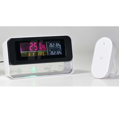Прибор с дополнительным дисплеем, отображающим текущую погоду. Комплектуется беспроводным датчиком для замеров температуры и влажности внутри или снаружи помещения. Измеряет температуру, давление и влажность, на основании чего делает прогноз погоды в виде анимированных картинок. Имеет систему автозапоминания максимальных и минимальных значений. Метеостанция "HighStar 7730B" оснащена календарем и часами с будильником с функцией отсрочки при срабатывании. Основной и дополнительный экраны оборудованы многоцветной подсветкой для максимально комфортного считывания информации. С погодной станцией Вы сможете узнавать ТОЧНЫЕ прогнозы погоды для своей местности! Метеорологи предсказывают погоду, опираясь на простейшие сведения: атмосферное давление, влажность и температура воздуха. Для этого не нужны космические спутники или мощный компьютер, просчитывающий данные со всей планеты. Поэтому стать "самому себе метеорологом", чтобы составлять прогнозы погоды не для какой-то абстрактной территории, а для своей местности - не такая уж невыполнимая задача. Достаточно приобрести метеостанцию, например, такую как "HighStar 7730B" и установить ее у себя дома. С таким прибором неожиданные изменения погоды больше никогда не застанут Вас врасплох, ведь у Вас всегда будут самые точные и свежие данные!