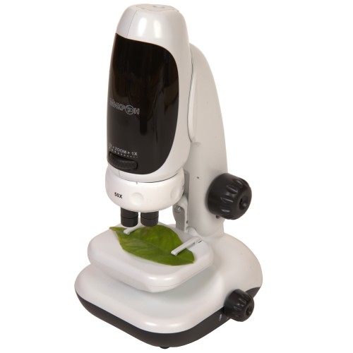 Благодаря цифровой камере микроскоп можно использовать для коллективного наблюдения за микромиром. В частности, изображение с него можно вывести на большой экран учебного проектора. Эта особенность позволит использовать всего один цифровой микроскоп для проведения занятий по биологии с целой группой учащихся. Однако, если Вам удобнее и привычнее пользоваться обычным окуляром, то Вы всегда можете снять камеру, чтобы вести наблюдения без нее.