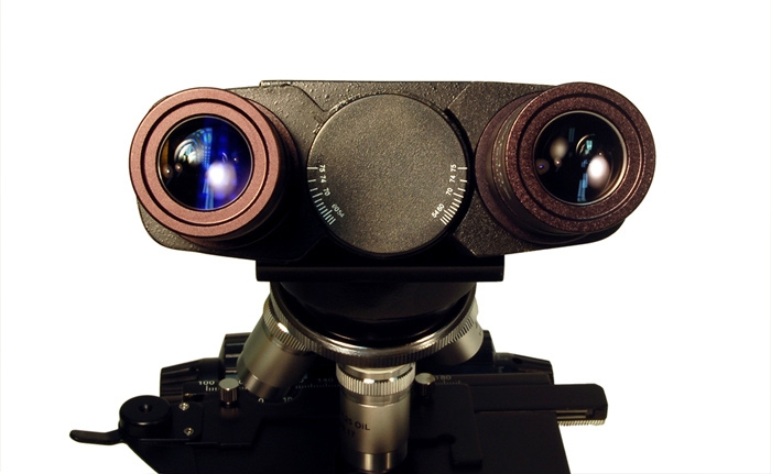 Микроскоп оснащен револьверной головкой на 4 объектива, которая позволяет быстро изменять используемое увеличение непосредственно в процессе работы. Бинокулярная насадка с возможностью регулировки межзрачкового расстояние обеспечивает максимальный комфорт при наблюдениях, благодаря ей нагрузка распределяется равномерно на оба глаза и они меньше устают даже при длительной работе. Окуляры наклонены к вертикали на угол 30°, что обеспечивает максимально удобное положение головы при работе с микроскопом. Микроскоп комплектуется двумя парами окуляров, что позволяет расширить диапазон используемых увеличений. В базовой комплектации можно получить увеличения от 40х до 2000х. При работе на высоких увеличениях используется иммерсионный метод наблюдения — это значит, что между объективом микроскопа и микропрепаратом вводится капля специальной жидкости, что улучшает качество изображения и позволяет получить более высокие увеличения. Микроскоп комплектуется флаконом иммерсионной жидкости.