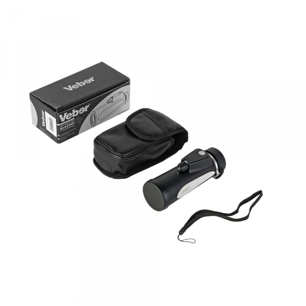Монокуляр Veber 8х42WP с компасом имеет обрезиненный, азотозаполненный, защищенный от воды и пыли корпус. В оптической системе монокуляра используется стекло марки BAK4, обладающее большим коэффициентом преломления, что позволяет уменьшить светохроматизм по краям поля зрения. Высококачественная оптика с многослойным просветлением дают изображение без каких-либо искажений. Удобное кольцо колесо фокусировки с дозированным усилием поможет быстро сфокусироваться. Длинный рабочий отрезок окуляра и поворотно-выдвижной наглазник (Twist-Up) позволят вести наблюдение в обычных или солнцезащитных очках. Дальномерная шкала в поле зрения позволяет приблизительно определить расстояние до объекта (если известны его размеры). Также в поле зрения находится шкала встроенного компаса, шкала подсвечивается через матовое окошко в корпусе.