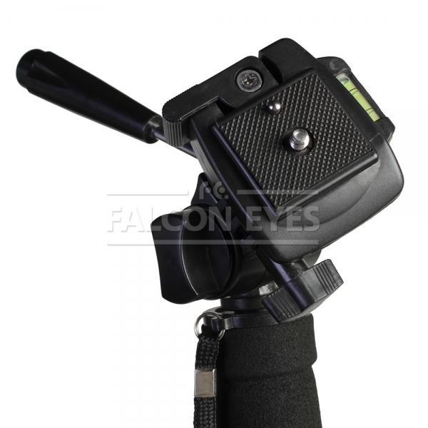 Монопод Falcon Eyes MP-3 предназначен для удобной установки фотоаппарата и стабилизации изображения. Монопод оборудован несменной 3D головкой с быстросъемной площадкой и пузырьковым уровнем. Четыре секции монопода обеспечивают широкий диапазон регулировки рабочей высоты. Максимальная высота в рабочем состоянии 180 см. В сложенном виде — 63 см. Большой диаметр секций (диаметр верхней секции 27 мм) и надежные цанговые зажимы успешно гасят передающиеся по корпусу вибрации и сохраняют прочность конструкции. Металлические зажимы с фторпластовыми прокладками обеспечивают долговечность работы и прочную фиксацию секций. Монопод изготовлен из алюминиево-магниевогосплава и весит 0,56 кг. Головка изготовлена из ударопрочного пластика.