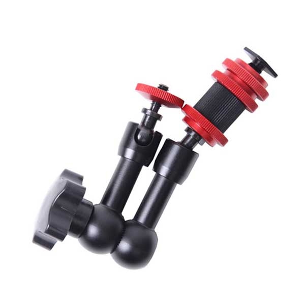 Этот держатель (консоль, magic arm) предназначен для установки осветителей, Центральное «колено» — с трещоткой, барашек центрального колена фиксирует не только перекладины, но одновременно и вращающие элементы на концах этих перекладин. Элемент «холодный башмак» держателя ARM 7 крепится на резьбе, сняв его можно закрепить держатель на стойке или площадке с винтом 1/4 дюйма.