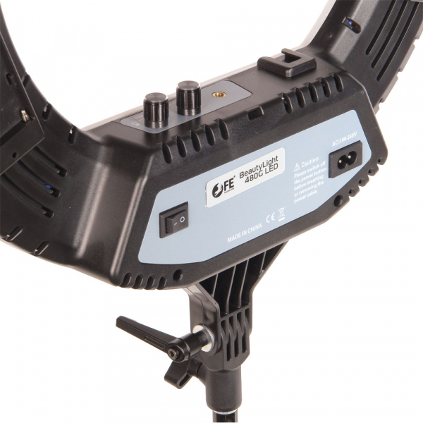 Светодиодный осветитель BeautyLight 480G LED лёгкий и компактный осветитель с источником света в виде кольцевой панели со светодиодами, с регулируемой мощностью светового потока и цветовой температурой. Для использования визажистами, гримёрами и стилистами важную роль играют бестеневой характер и возможность настройки цветовой температуры освещения. Небольшие размеры осветителя и низкий уровень потребляемой светодиодами мощности делают этот осветитель привлекательным также для использования в студии для портретной, предметной, рекламной и других видов фотосъемки.
