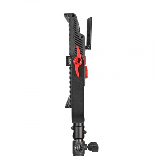 Прочный металлический кронштейн позволяет поворачивать осветитель на 360° по двум осям. В комплект входит удобная рукоятка для удобного использования ассистентом
