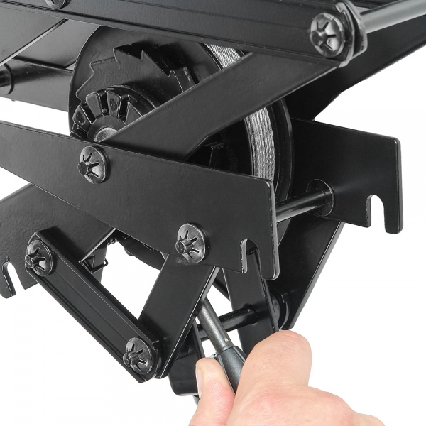 Пантограф Falcon Eyes # 3335 Пантограф Falcon Eyes #3335 предназначен для крепления осветительных приборов и другого оборудования (генераторы тумана, снега, мыльных пузырей) на потолочной подвесной системе Falcon Eyes А 3303. Пантограф изготовлен из алюминиевого сплава и при своих габаритах весит всего около 7 кг. Толщина рычагов пантографа 3 мм. Шарниры изготовлены из стали. Крепление Крепление к верхней каретке и крепление оборудования к пантографу осуществляется стальным пальцем диаметром 5/8 дюйма (16 мм) и имеет защитный винт исключающий выпадение пальца каретки. Дополнительно, оборудование на пантографе страхуется от падения стальным тросиком (Д=2 мм) с металлическим карабином. Амортизатор Возможность регулировки амортизатора позволяет настроить нагрузку от 0 до 15 кг. Для обеспечения плавности движений установленного оборудования, необходимо настроить упругость амортизатора в зависимости от массы груза (если нагрузка большая, амортизатор должен быть жестким; в противном случае, амортизатор должен быть ослаблен). Регулировка осуществляется комплектным ключом. Ролики для подвесной потолочной системы Нейлоновые колеса на стальной оси выдерживают большие нагрузки. Плавность хода обеспечивается подшипниками качения. Для безопасного использования в конструкции предусмотрен механизм торможения. Надежность и долговечность подвижных частей пантографа обеспечивают стальные шарниры, отсутствие пластика в элементах несущих нагрузку, металлические заклепки, увеличенная толщина металла рычагов пантографа, подшипники качения в конструкции верхней каретки, долговечный материал роликов.