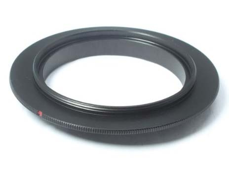 Реверсивный адаптер предназначен для макросъемки. Позволяет присоединить объектив к фотоаппарату в перевернутом положении. Адаптер накручивается на резьбу для светофильтра и устанавливается в фотоаппарат. Благодаря реверсивному адаптеру вы сможете снимать мелкие объекты с большим увеличением, пользуясь штатным объективом и не тратя много средств на дорогие макрообъективы. Можно использовать объективы сторонних производителей (диаметр под светофильтр на объективе должен совпадать с реверсивным переходником). Необходимо учитывать, что при работе с данным адаптером не будет работать автофокус и прыгающая диафрагма, значение диафрагмы не будет передаваться камере. Возможно ручное (в некоторых случаях полуавтоматическое) управление. Из-за снижения светосилы усложняется наводка на резкость.