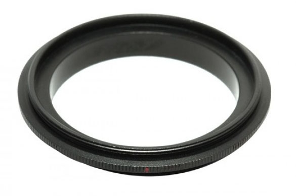 Реверсивное кольцо предназначено для макросъемки. Позволяет присоединить один объектив на другой в перевернутом положении. Кольцо вкручивается в резьбу светофильтра одной стороной в один объектив, а другой стороной в другой объектив, после этого такая связка присоединяется к камере. Благодаря реверсивному кольцу вы сможете снимать мелкие объекты с очень большим увеличением, не тратя много средств на специальные макрообъективы. Обычно в качестве объектива, который работает в обычном режиме и присоединен к камере, используют длиннофокусный объектив, а в качестве второго (реверсивного) объектива используют короткофокусный объектив. В противном случае будет сильное виньетирование. Если в качестве основного объектива используется автофокусный объектив, то возможность автофокусировки сохраняется.