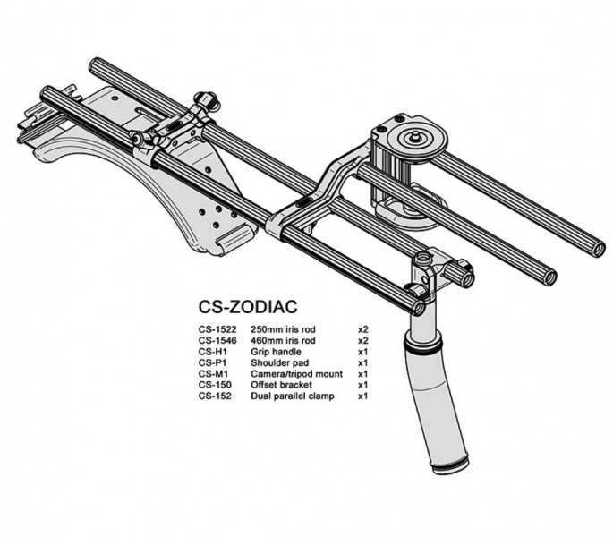 Профессиональный комплект поддерживающих штоков для HDSLR-камер CS-ZODIAC позволяет осуществлять регулировку положения по осям x и y. Таким образом обеспечивается наиболее выгодная точка для съемки, независимо от того, используете ли вы оптический видоискатель или LCD-экран на DSLR-камере.