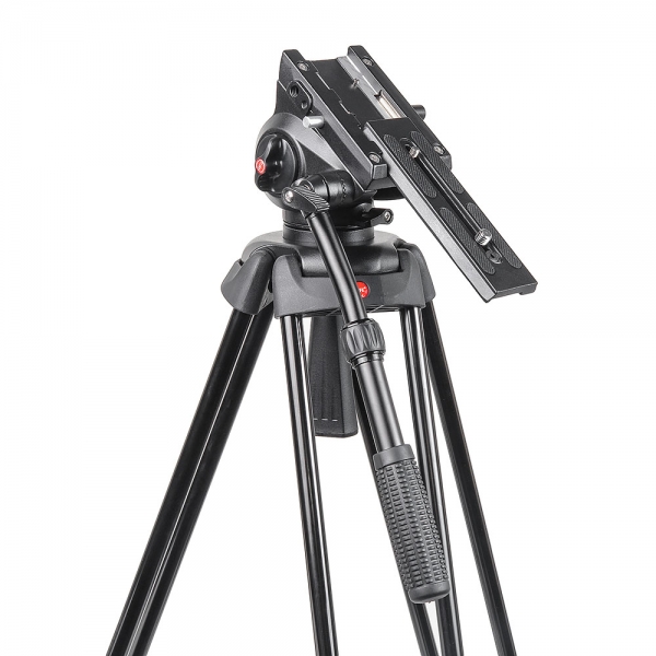 Съёмная голова с жидкостным демпфированием и системой постоянного контрбаланса поворачивается на 360˚ по горизонтали, наклоняется вперёд и назад на углы от -80° до +90°, имеет независимые фиксаторы панорамирования и независимый регулятор вертикального демпфирования. Голова изготовлена из алюминиево-магниевого сплава. Благодаря жидкостному демпфированию все движения происходят плавно и без рывков. Дополнительно голова оснащена предохранителем площадки, кнопка которого находится на левой стороне. На быстросъёмной площадке предусмотрен винт диаметром 1/4" и 3/8“ (входят в комплект), подпружиненный штифт и противоскользящая вставка. Также на левой стороне головы есть два отверстия с системной резьбой 1/4" и 3/8“ для установки дополнительного оборудования или, в зависимости от резьбы на вашей камере, в одно из отверстий можно ввернуть «лишний» винт для исключения его потери. Площадку можно смещать вперёд и назад.