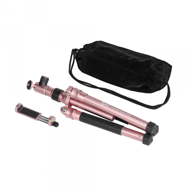 Компактный алюминиевый штатив со съемным адаптером для установки смартфона, рассчитан для использования с лёгким оборудованием. Удовлетворит все фотографические потребности и мастера и новичка. Он отлично подходит для тех, кто любит частые вылазки на природу, пешие прогулки и привык путешествовать налегке, штатив сможет поместиться даже в походную сумку. Длина в сложенном виде - 26 см, вес штатива с адаптером — 0.83 кг. Подходит для большинства видов съемок – макросъемка, портретная съемка, трэвел-фотография и многих других. Ножки и центральная колонна штатива пятисекционные — их диаметр составляет 21, 17, 15, 12 и 9 мм. Шарнирные соединения ножек и шаровой шарнир головки штатива выполнены на прецизионном CNC оборудовании. Для хранения и транспортировки предусмотрен тканевый чехол.