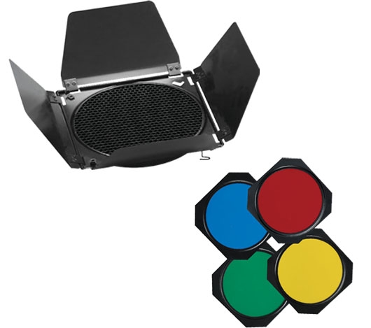 Шторки на рефлектор в комплекте с сотой и цветными фильтрами 4 цвета (синий, желтый, красный, зеленый). |
