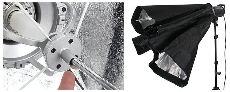 Подбирается под снимаемый объект: небольшие октобоксы применяются крупнолицевых портретов, для получения мягкого освещения. В ростовой съемке подойдут высокие стрипбоксы (вытянутый прямоугольник) и любые другие крупногабаритные модификаторы. Сборка конструкции интуитивно понятна и не требует много времени. Установка на студийный свет происходит через байонетное соединение: литой алюминиевый адаптер и сменное байонетное кольцо на Bowens. Данный вид соединения обеспечивает свободное вращение модификатора.