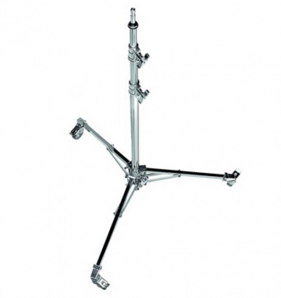 Стойка с низким основанием, на колесах с тормозами, основание и первая труба колонны - стальные, телескопические трубы - алюминиевые