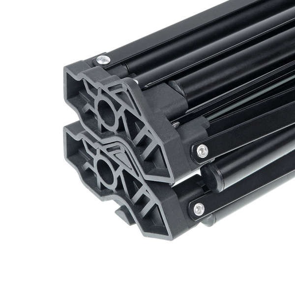 Стойка-тренога Falcon Eyes FlatStand 2400BAC для фото/видеостудии Новый дизайн Конструкция стойки позволяет складывать её опоры таким образом, что в сложенном состоянии стойка занимает существенно меньше места в отличии от стоек классической конструкции. Минимальная толщина стойки Falcon Eyes FlatStand 2400BAC в сложенном состоянии составляет всего 6 см. Более того, устройство (механизм) стойки позволяет соединять стойки в сложенном состоянии меду собой (с помощью клипсового механизма, стойки должны быть одинакового размера). Таким образом, вы можете сэкономить место и время— сложенные между собой стойки можно перенести за один подход. Примечание: не рекомендуется соединять между собой более четырёх стоек, так как клипсы соединений не рассчитаны на нагрузку свыше 5 кг. Максимальная рабочая высота стойки 240 см, в сложенном состоянии длина стойки 82 см. Диаметры секций стойки: 25, 22, 19, 16 мм. Диаметр ножек 19 мм. В рабочем положении размах ножек стойки составляет 86 см. Амортизация Механизм воздушной амортизации обеспечит безопасную эксплуатацию и предохранит оборудование от повреждений. Три секции надежно соединяются между собой винтовыми зажимами. Регулируемая по высоте база с треногой. Секции стойки-треноги изготовлены из алюминиевого сплава, а зажимы, крестовины и рукоятки - ABS пластик. Шаровая голова Для установки камер или другого оборудования на стойку, в комплекте предусмотрена съёмная шаровая мини-голова. Купить стойку-треногу Falcon Eyes FlatStand 2400BAC мы рекомендуем фотографам и операторам, которым важна компактность их оборудования на выездных съёмках.