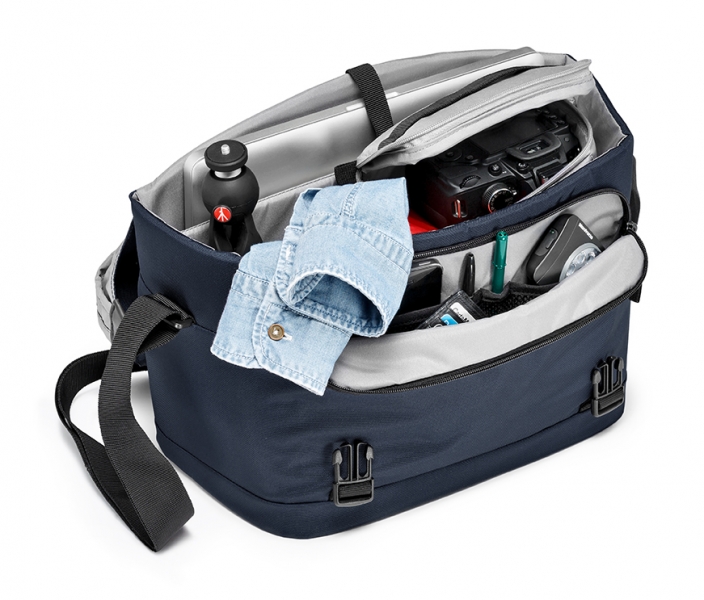 Многофункциональная сумка для повседневного использования. Съемный чехол для защиты фотокамеры, отделения для 15'' ноутбука, различных аксессуаров и личных вещей. Съемный чехол, оснащенный системой защиты Manfrotto, позволяет безопасно переносить DSLR камеру с установленным зум-объективом и дополнительным объективом. Регулируемый плечевой ремень. Молния в верхней части сумки обеспечивает быстрый доступ к содержимому. Характеристики