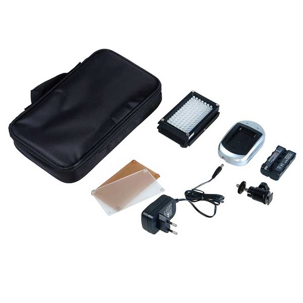 GreenBean LED BOX 98 представляет собой плоский источник света с расположенными по всей площади 98 яркими светодиодами. Прибор воспроизводит мягкий и яркий пучок света с цветовой температурой 5600К (дневной свет), в комплекте фильтр 3200К (лампа накаливания). Компактный и легкий корпус с тонкой рамкой. Толщина корпуса всего 50 мм (с установленными аккумуляторами), благодаря этому его можно использовать там, где будет трудно разместить обычный осветитель. Сверху и снизу на корпусе находятся салазки с фиксаторами, для соединения нескольких приборов GreenBean LED BOX 98 в группу. Конверсионный и рассеивающий фильтры, фиксируются с помощью магнитных защелок и значительно расширяют возможности осветителя. Малое энергопотребление и тепловыделение обеспечат экономичную и комфортную работу. Постоянная яркость сохраняется даже при низком заряде аккумулятора. Цифровой контроллер работающий по методу широтно-импульсной модуляции (многоступенчатое диммирование без мерцания в выбранном положении) позволяет регулировать яркость прибора от 10 до 100%. В комплект входит: аккумулятор емкостью 2200 мАч, зарядное устройство, сетевой адаптер питания, кронштейн с шаровой головкой и посадочными разъемами «башмак» и 1/4", фильтр понижающий цветовую температуру (3200К), матовый рассеивающий фильтр, удобная сумка-чехол с ручкой и жесткими стенками. Емкости аккумулятора хватит примерно на 150 минут автономной работы, на панели управления находится кнопка индикации заряда батареи. Осветитель может работать от сетевого или автомобильного адаптера питания из комплекта.