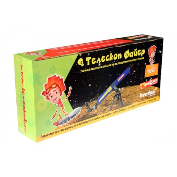 Телескоп Levenhuk Фиксики Файер будет интересен как совсем юным любителям астрономии, так и их родителям. Прибор прост в обращении, поэтому освоить его функции будет легко даже ребенку. С помощью телескопа можно вести интереснейшие наземные наблюдения, а также изучать разнообразные астрономические объекты, такие, например, как кратеры на Луне, облачные полосы на Юпитере или кольца Сатурна.
