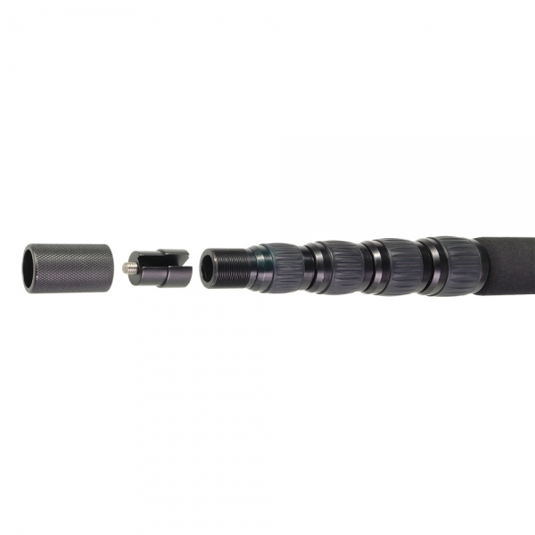 Удочка микрофонная GreenBean MicHolder 240 Алюминиевая телескопическая микрофонная удочка (бум) GreenBean MicHolder 240 выдвигается на длину 2,4 м из сложенного состояния длиной 64,5 см, вес 0,61 кг. На конце удочки находится винт с резьбой 1/4" (в комплекте переходник 3/8"). Конструкция содержит 5 сегментов, что облегчает выбор нужной длины, хранение и транспортировку. Секции выполнены из алюминиевого сплава с толщиной стенки 1 мм, алюминиевые цанговые зажимы с резиновыми накладками надежно фиксируют секции. Благодаря прецизионно сбалансированной конструкции секции выдвигаются очень плавно и фиксируются без люфтов. Внутри удочки предусмотрен канал для кабеля. Рукоятка из вспененного материала длиной 395 мм позволит комфортно удерживать удочку продолжительное время. В комплекте поставляется чехол с наплечным ремнем. Микрофонная удочка MicHolder 350C предназначена для использования в видео- и кинопроизводстве, позволяет поворачивать и направлять микрофон контролируемым образом, а также достаточно быстро передвигаться за источником звука.