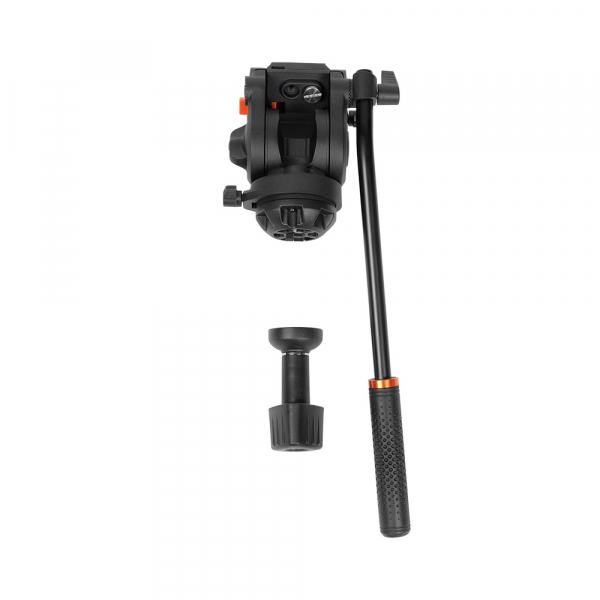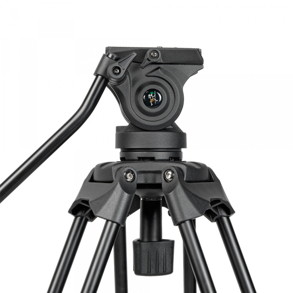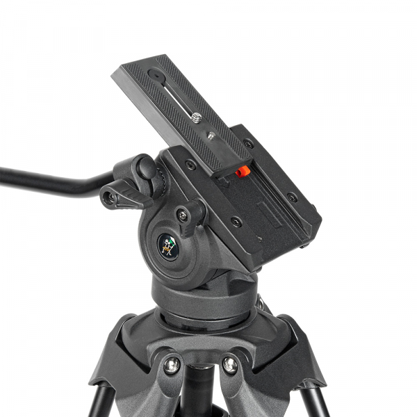 Съёмная голова с жидкостным демпфированием и системой постоянного контрбаланса поворачивается на 360˚ по горизонтали, наклоняется на углы от -75° до +90°, имеет независимые фиксаторы панорамирования. Голова изготовлена из алюминиево-магниевого сплава. Благодаря жидкостному демпфированию все движения происходят плавно и без рывков. Дополнительно голова оснащена предохранителем площадки, кнопка которого находится на левой стороне. Также на левой стороне головы есть отверстие с системной резьбой 3/8“ для установки дополнительного оборудования или, в зависимости от резьбы на вашей камере, можно ввернуть «лишний» винт для исключения его потери. Винтовое крепление головки к штативу выполнено из стали.