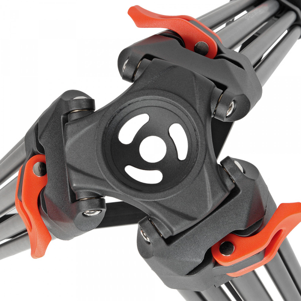 Ножки штатива вилочного типа. Секции ног надежно фиксируются клипсовыми замками. При ослаблении клипсового фиксатора — возможна регулировка зажима винтом с обратной стороны клипсы. Шестигранные ключи для регулировки в комплекте. На концах штативных ног размещены парные шипы, на которые надеваются резиновые "башмаки". Таким образом, можно выбрать необходимый тип опоры для различных условий съемки. Шипы используются вне помещений, например для устойчивости на грунте или на льду, а резиновые опоры обеспечивают отличное сцепление на скользких и гладких поверхностях для защиты поверхности пола от царапин и повреждений. Для усиления штатива используется средняя металлическая растяжка, которая не позволяет ногам «разъезжаться». В сложенном виде ножки штатива фиксируются между собой пластиковыми фиксаторами, которые не позволяют штативу разложиться. Минимальная рабочая высота штатива составляет 79 см.