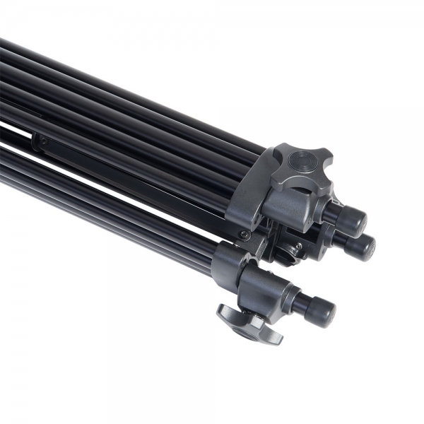 3-секционные телескопические алюминиевые ноги обеспечивают устойчивость и прочность. Верхняя секция из сдвоенных трубок препятствует скручиванию треноги. Металлические винтовые зажимы надежно и быстро фиксируют секции.