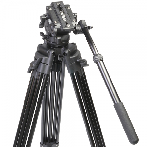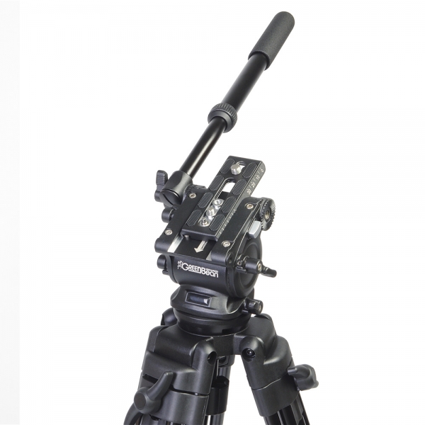 Видеоштатив GreenBean VideoMaster 306 Комплект GreenBean VideoMaster 306 включает видеоголову с жидкостным демпфированием и легкий алюминиевый видеоштатив со сдвоенными ногами. Комплект предназначен для использования с DSLR фото- и видеокамерами весом до 5 кг. Максимальная высота штатива 160 см, вес комплекта 3,3 кг. Жидкостная голова с отключаемым механизмом контрбаланса Голова оборудована механизмом демпфирования по осям панорамирования и наклона гарантирует превосходную плавность съемки и обеспечивает возможность полного контроля и точности каждого движения камеры. Высококачественная система балансировки (механизм контрбаланса) обеспечивает возможность центровать угол наклона камеры с выбором нулевого положения. Система контрбаланса при необходимости отключается. Скользящая быстросъемная площадка размером 42х105 мм поможет сбалансировать камеру при смене объектива, на торцах площадки нанесена линейка для быстрого позиционирования при повторной установке объектива. На площадке находится подпружиненный фиксатор, препятствующий сдвигу камеры, в комплекте винты 1/4" и 3/8". Диапазон угла наклона головы: +90° / -65°. Положение головы по осям панорамирования и наклона фиксируется независимо. Для установки просмотрового монитора, осветителя, микрофона или другого вспомогательного оборудования предусмотрены два разъема 1/4”. Телескопическая рукоятка для панорамирования обеспечивает высокую точность ведения камеры и может быть установлена слева или справа от головки. Длина рукоятки регулируется в пределах 380-590 мм. 75 мм чаша для соединения головы и штатива Видеоголовка устанавливается на штатив с помощью шаровой опоры ("чаши") 75 мм. Шаровая опора головы видеоштатива дает оператору возможность точно выставить горизонт, что очень важно для качественной видеосъемки. На основании видеоголовки размещен круглый пузырьковый уровень. Устойчивость на любой поверхности 3-секционные сдвоенные телескопические алюминиевые ноги обеспечивают компактность и малый вес. Модернизированные зажимы надежно и быстро блокируют секции и придают штативу высокую устойчивость. Диаметр трубок секций штатива: 14/17,5 мм. Для усиления штатива используется верхняя растяжка, благодаря этому штатив можно использовать на неровных поверхностях (камнях, ступенях лестницы и т.д.). На концах штативных ног размещены резиновые опоры препятствующие скольжению. Для дополнительной устойчивости в ветреную погоду в одной из ног штатива находится подпружиненный трос с крюком для установки груза противовеса. Сумка для транспортировки Штатив VideoMaster 306 комплектуется прочной сумкой для транспортировки и хранения. В стенках сумки вшит вспененный материал для поглощения ударов, а для комфортной и удобной переноски предусмотрены ручка и плечевой ремень. Внутренний карман позволит разместить в нем дополнительные аксессуары. Основное отделение и карман закрываются молнией.
