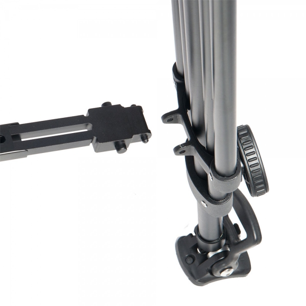 Для усиления штатива используется средняя растяжка, которая не позволяет ногам разъезжаться и обеспечивает быстрое затухание колебаний. Такое размещение растяжки обеспечивает возможность использовать штатив на неровных поверхностях (камнях, ступенях лестницы и т.д.).