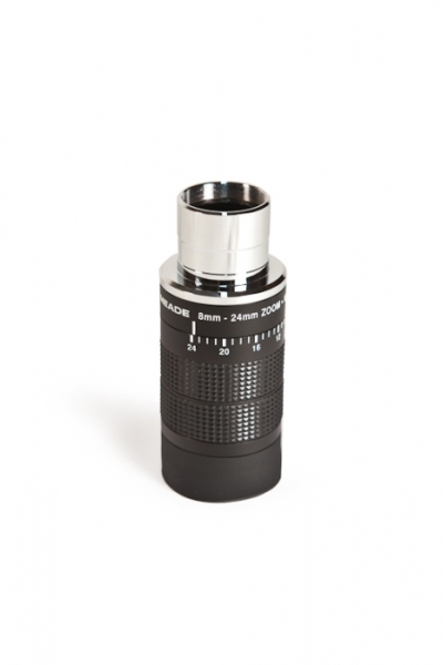 Оптическая схема окуляра позволяет изменять его фокусное расстояние в диапазоне 8-24 мм. Все линзы изготовлены из высококачественного оптического стекла с многослойным просветляющим покрытием, что обеспечивает максимальную яркость и контрастность изображения. Большое удаление выходного зрачка позволяет использовать этот окуляр даже тем, кто носит очки.